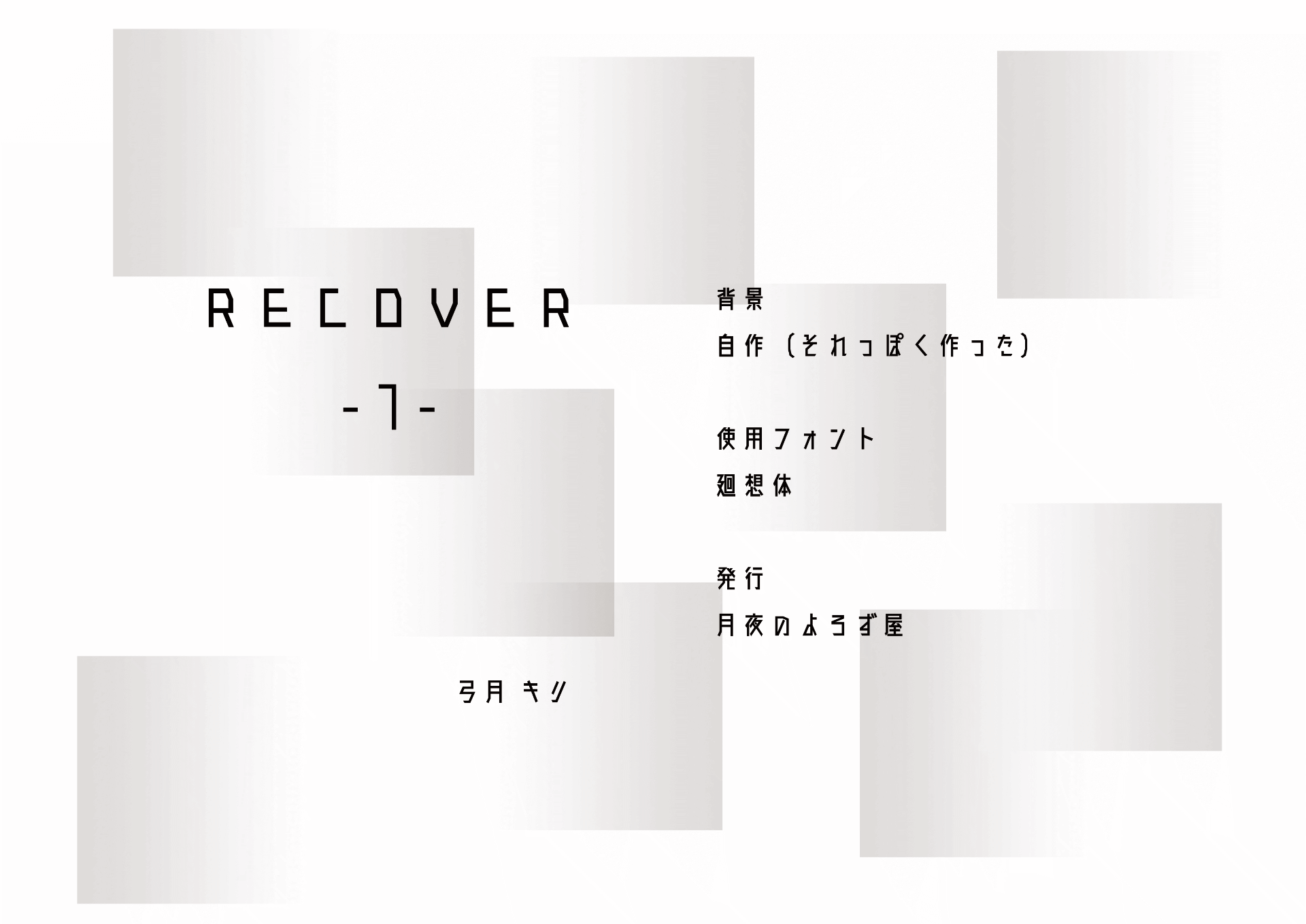 | 【表紙】使用素材・使用フォント | 廻想体「もじワク研究」 https://moji-waku.com/kaiso/index.html ここのフォントが結構好きなので、いろんな作品で使っています。 |